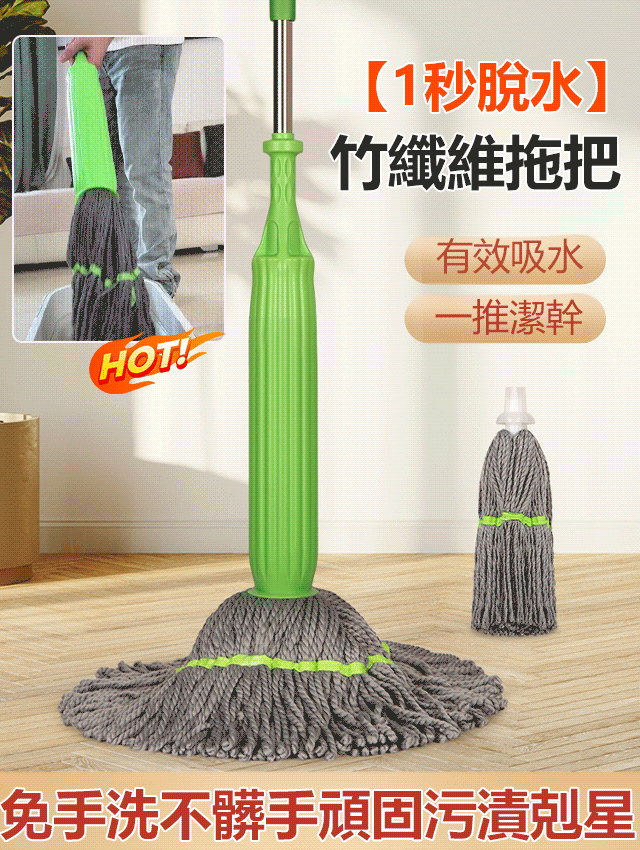 【1秒脫水】環保竹纖維自擰旋轉拖把,免手擰,輕鬆脫水,速乾拖地,不留痕